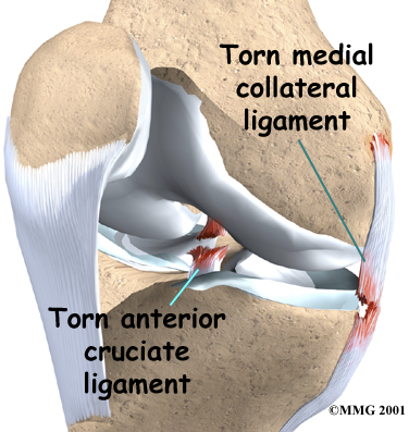 The MCL and the ACL share the stabilization of the medial compartment and are often injured together. For a valgus stress the MCL is the primary restraint and once ruptured the forces acts on the ACL which is the secondary restraint.